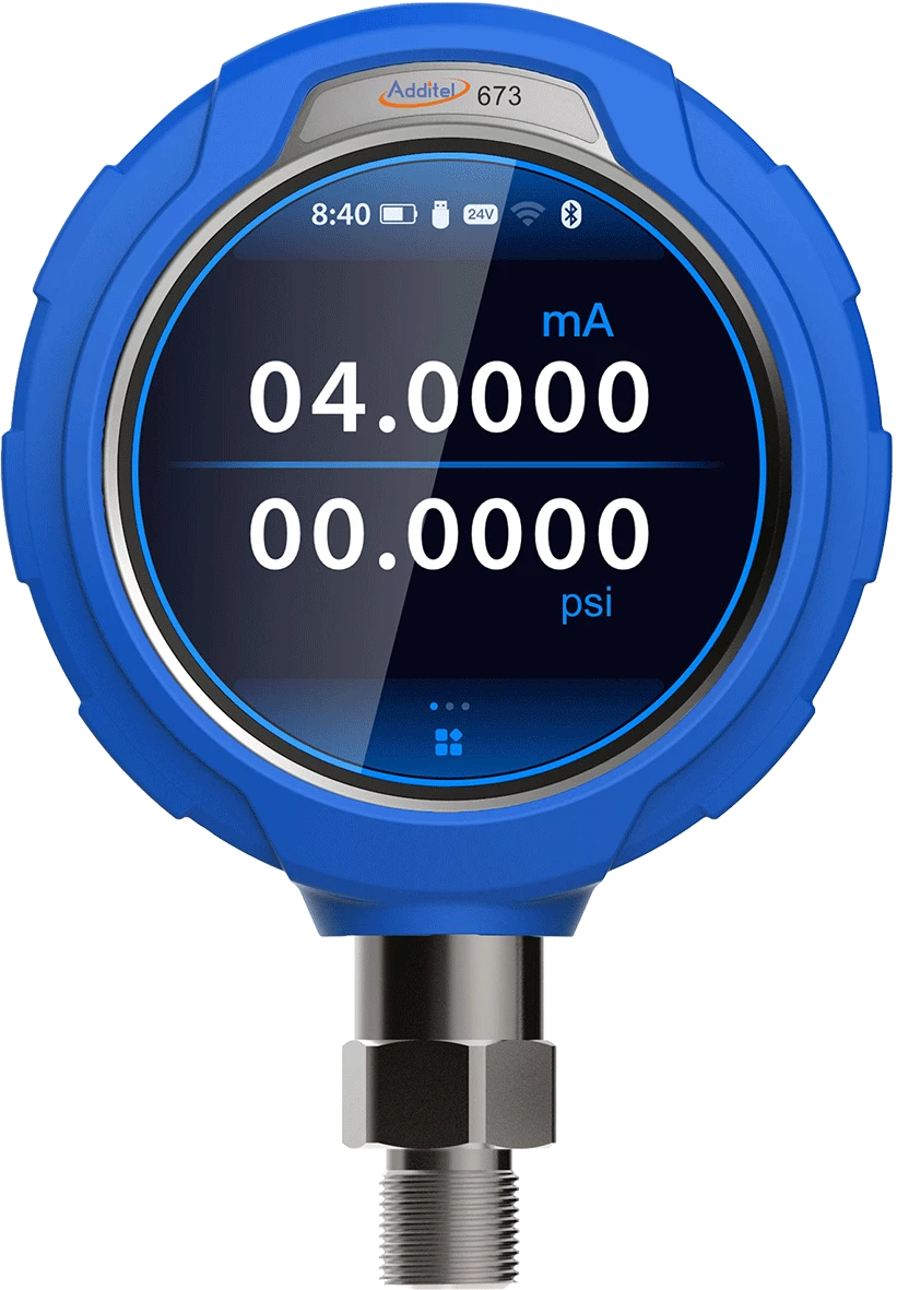 ADT673 je prenosivi uređaj koji može precizno meriti pritisak pomoću ugrađenog senzora pritiska, kao i čitati mA struju ili V DC proizvedenu od strane pretvarača. Može čak obezbediti napon za uzbuđenje (petlju napajanja) za napajanje senzora ili prenosnika tokom kalibracije.