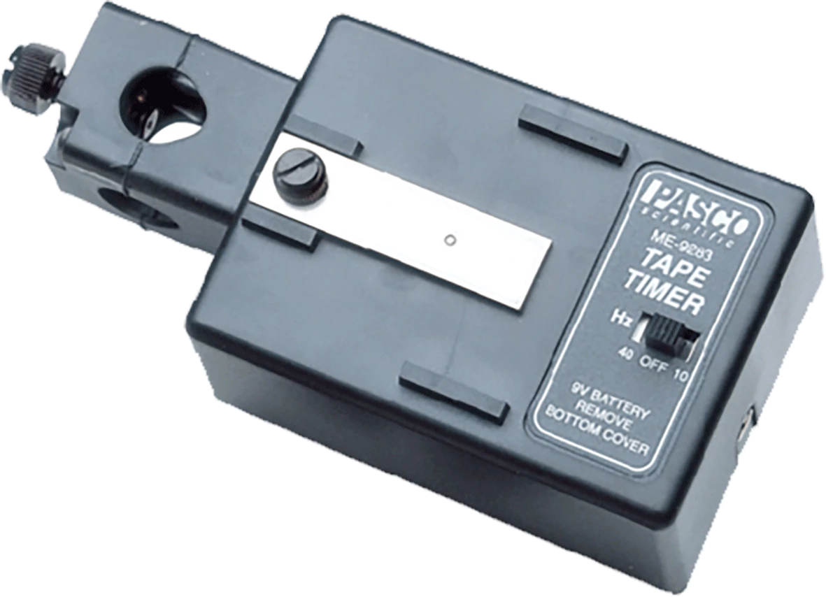 - Omogućava učenicima vizualnu demonstraciju brzine i ubrzanja. Pomerajući objekat povlači traku papira kroz tajmer. Tajmer štampa tačke na traci u jednakim vremenskim intervalima. Rezultat je niz tačaka na traci papira, koje predstavljaju poziciju objekta u funkciji vremena.