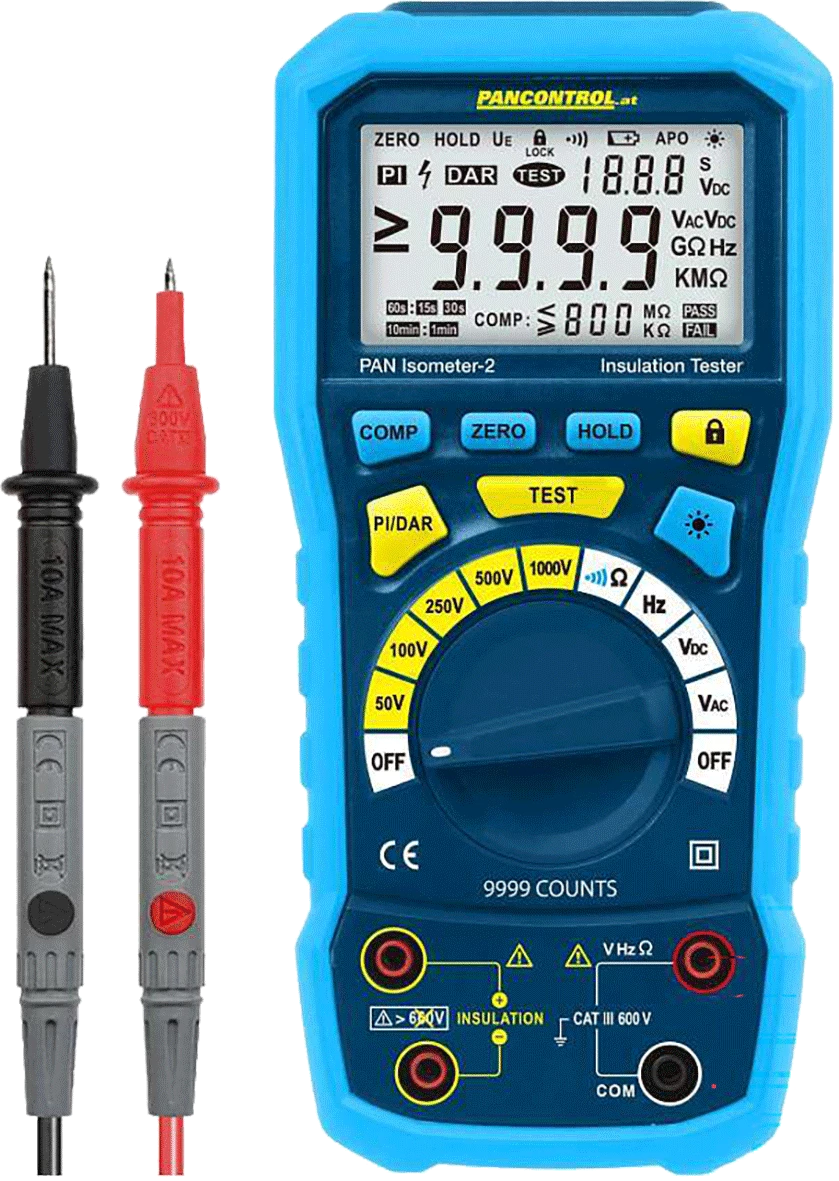 - Testni naponi za merenje otpornosti izolacije: 50 V, 100 V, 250 V, 500 V i 1000 V