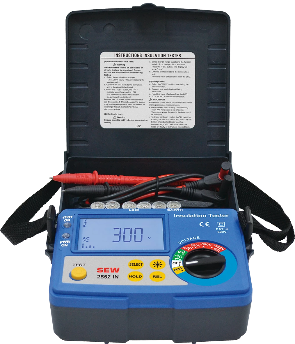 - Četiri izolaciona testna napona (DC): 125 V, 250 V, 500 V, 1000 V