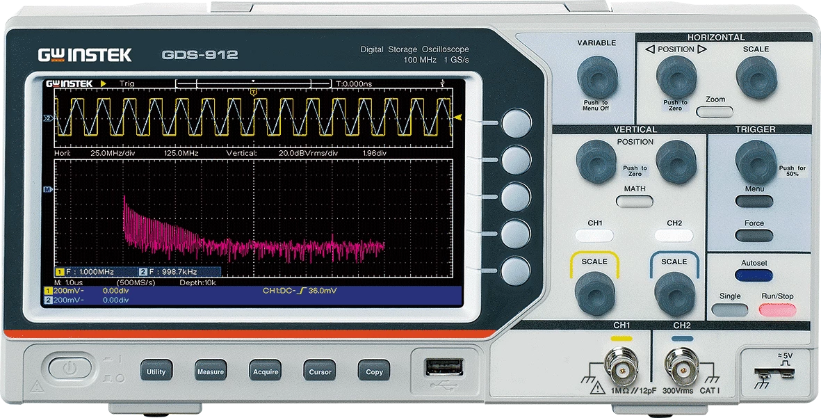 - Dubina memorije: 20 Mpts po kanalu, omogućava hvatanje tranzijenata dugog trajanja i održava svoju brzinu uzorkovanja na srednjim i niskim vremenskim osnovama kroz postavke dugog memoriranja.