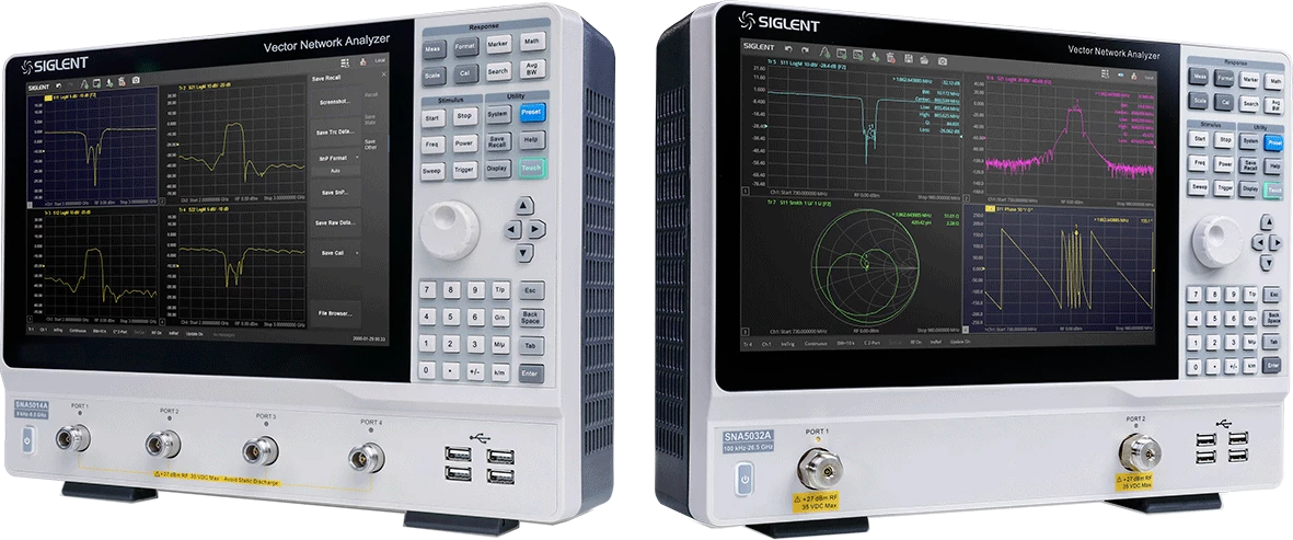 - Siglent SNA5000A serija vektorskih mrežnih analizatora ima frekvencijski opseg od 9 kHz do 8.5 GHz i 100 kHz do 26.5 GHz, sa podrškom za merenje 2/4-portnih parametara rasipanja, diferencijalnih parametara i vremenskih parametara.